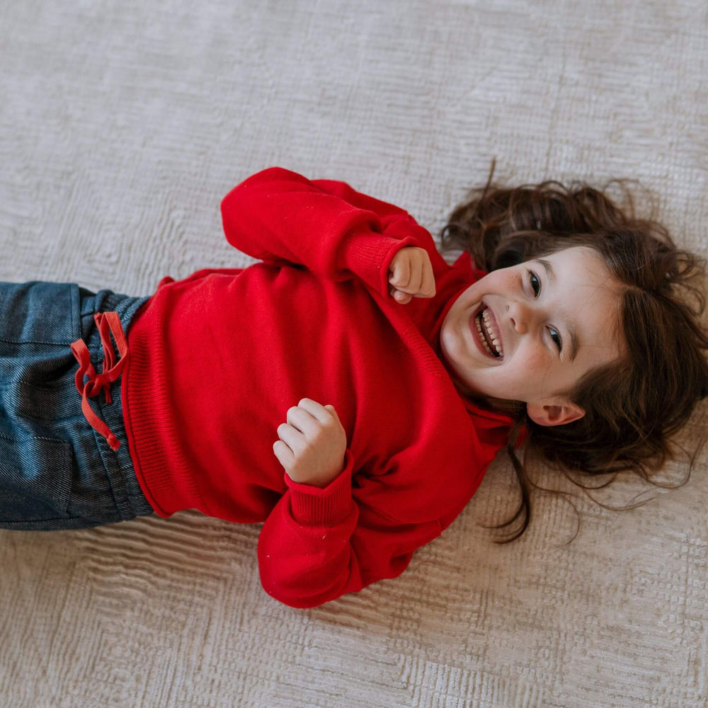 Dress them in warmth as vibrant as their spirit. The Cotton Cashmere Hoodie in Fire Red brings a pop of joy to gray mornings – it’s bright, bold, and as cozy as a cuddle by the fireside. From the moment they pull it on, this cashmere knits sparks smiles and ignites their imagination. Whether they’re racing off to school or playing make-believe at home, the loose, easy fit moves with them through every leap and laugh, providing all-day comfort in any season.